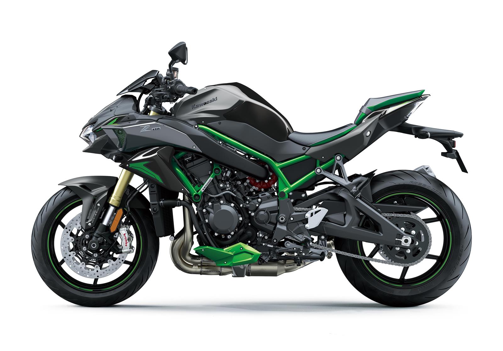 La nouvelle version du Supernaked est arrivée. La nouvelle Z H2 SE est boostée par la technologie unique Kawasaki Supercharger, avec de nouvelles caractéristiques dédiées offrant des performances inégalées : la nouvelle suspension électronique Showa avec la technologie Skyhook, les étriers de frein Brembo de la série H2, ainsi que de nouvelles couleurs et de nouveaux graphismes, se combinent pour vous faire vivre des émotions au-delà des limites. SUPERCHARGE !SUPERCHARGE !